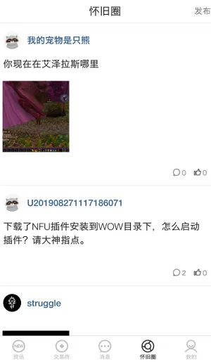 4、设置怀旧圈,玩家可在此发布遇到的问题,能得到大神的指点与帮助。