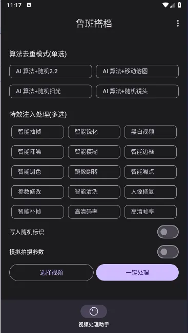 1、鲁班搭档安卓版手机版操作十分简便,界面简洁直观,无需复杂技术,一键智能化处理,视频去重和编辑轻松完成。
