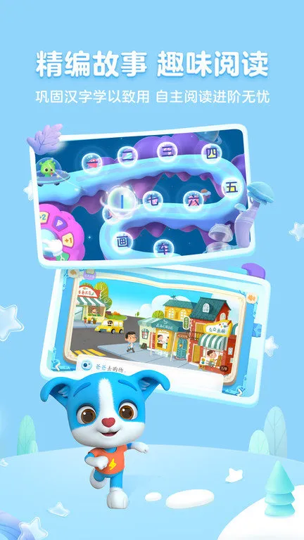 1、权威字库:精选1300部编字、5200常用词、1300基础句子,覆盖小学低年级语文课标,三段式课程设计,满足不同年龄段识字需求,助力孩子轻松完成幼小衔接。