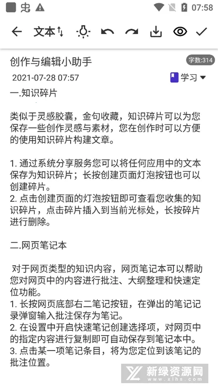 知拾笔记是一款手机笔记记录软件,支持多种文本模式。具备备份恢复、云备份、跨机备份等功能,还有夜间模式等设置。能收集多种知识类别,方便分类管理,助力构建知识体系。