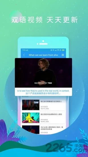 1. 英语阅读安卓版手机版界面清新简洁,内容丰富及时,拥有文字、图片、音视频的多媒体阅读体验,边看边听边读,能全面提升听说读能力。