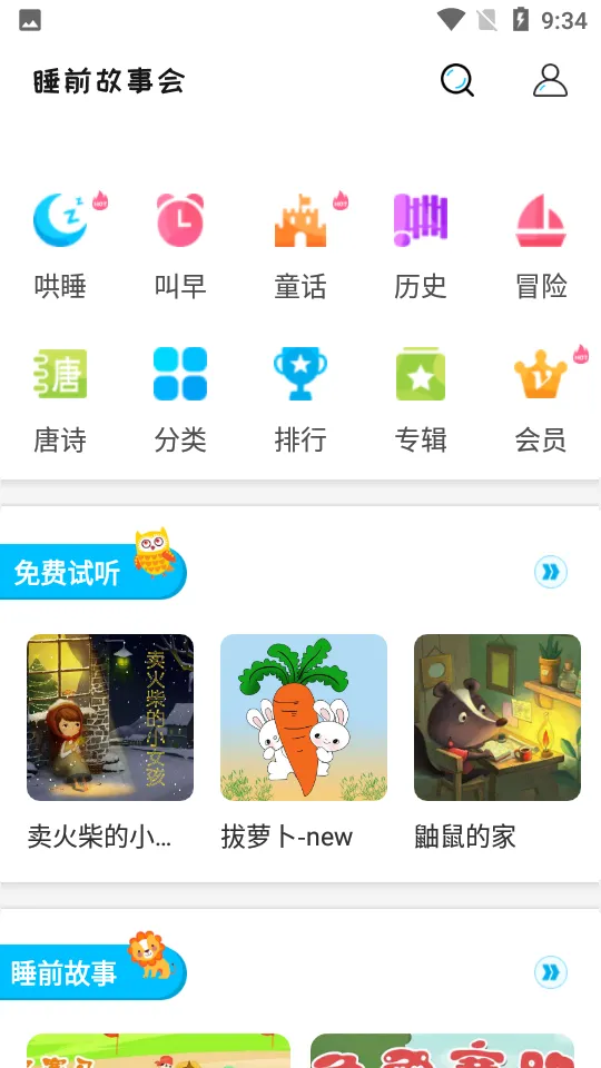 睡前故事会是儿童哄睡软件,涵盖睡前故事、儿歌、胎教音乐等上万内容。按年龄分1 - 3岁、4 - 6岁故事,由名师选。助宝宝入睡,激发想象,融入知识,家长更省心 。