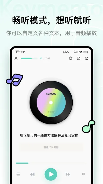 1. **自定义学习超便捷**:Keymemo背诵记忆卡可让用户根据自身需求,自定义问答、音频、视频、练习题等内容,还能智能生成多种学习模式,充分满足多样化学习需求。