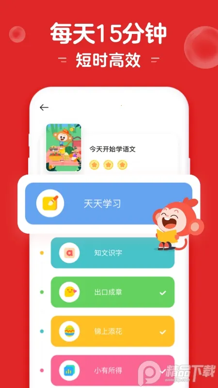 2. **教学模式有趣**:采用情景动画与交互游戏相结合的教学模式,将知识融入故事情节,孩子能在轻松愉快的氛围中学习,每日一刻钟的碎片化学习高效利用注意力黄金时段。