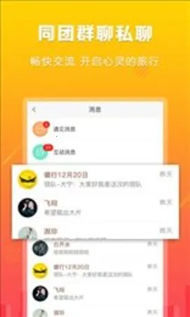 4. 即时消息功能实用,订单消息、出团通知一手掌握,旅游约伴方便,能同团交流私聊团友,运动排行榜实时更新可与好友PK。