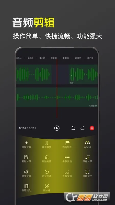 4. 其功能丰富,涵盖录音、音频剪辑、去噪、去空白、裁剪拼接、多轨混音、音频格式转化、从视频分离音频、录音转文字等,满足多样需求。 安装包大小适中,安装流程简单,适配不同安卓系统版本,老旧机型也能找到合适版本体验。资源下载链接稳定,无恶意弹窗广告,可断点续传,大文件下载速度快,页面无干扰,软件功能完整无阉割。