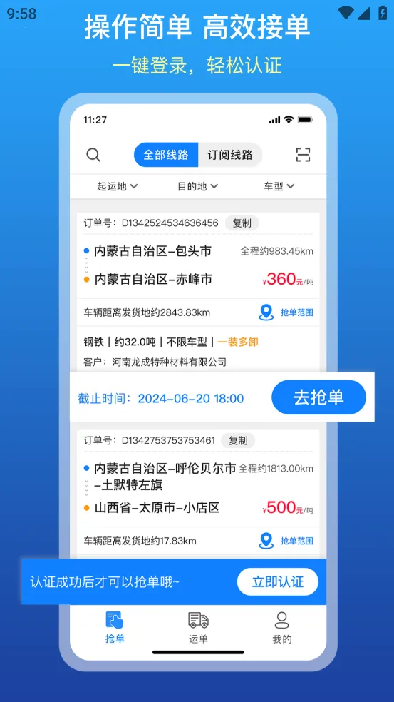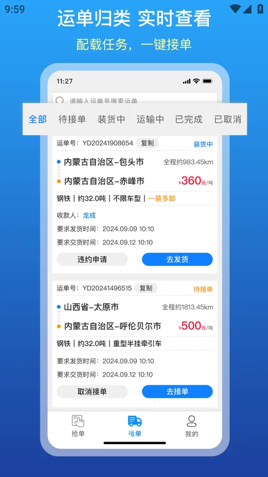 3. 订单信息实时更新,能确保司机第一时间掌握最新货源,提高抢单成功率。