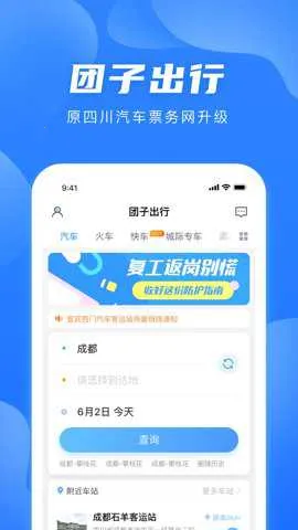 1. 购票体验便捷,输入目的地就能一键快速查看到详细票务信息进行购买,涵盖四川省内多种车票,让出行更方便。