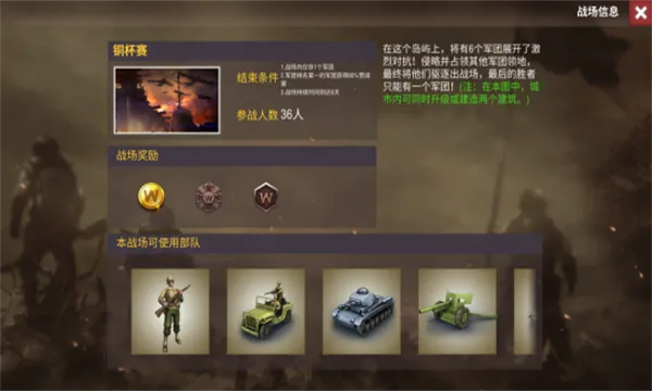 - 《二战风云2最新手机版》带来了多元化的战斗体验,海陆空全兵种搭配,仿佛一场精彩绝伦的战争盛宴。玩家能自由匹配,在多样地图中酣畅对决。