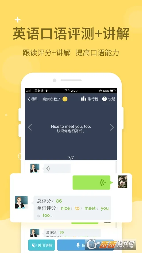 2、软件通过动画形式讲解知识点,激发学生学习兴趣。还有众多实用学习小工具,如口语评测、课文朗读等,随时随地可学习。