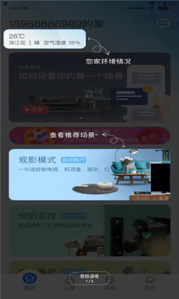3. 可远程控制智能设备,无论身处何方都能随时操纵家庭内的智能设备并掌握状态,还能一键共享给家人朋友,全家享受智能生活。