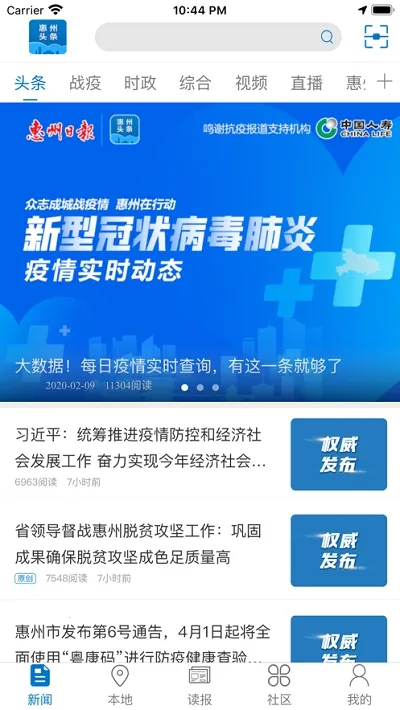 惠州头条是惠州报业传媒集团官方新闻客户端,权威发布本地资讯和民生热点。有新闻评论、问政等功能,界面简洁易操作,还能进行生活缴费、违章查询等,提供多种服务。