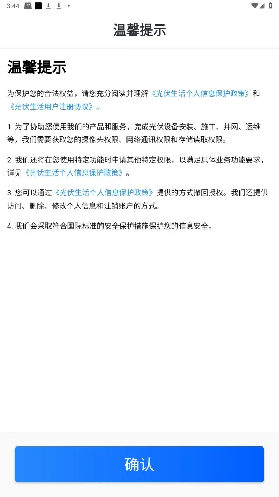 光伏生活服务终端是一款超实用的软件。它能为用户提供全面的光伏知识,像太阳能发电原理、光伏科技进展等,帮您轻松了解光伏能源。这里还有光伏发电计算器、太阳能热水器选购指南等实用工具,助您根据自身需求和条件选择应用光伏能源。它能让您在线申请安装光伏电站,快速完成代理商关联和电站申请,安装流程进度实时可见,给您一站式电站安装服务。发电数据和收益直观展示,您能查看每日、每月及以往发电情况,每度电收益也清晰明了,还能对电站情况了如指掌,异常及时通知。施工时可远程监控施工现场及验收,保障质量,施工步骤规范有序。有了它,管理电站超方便,一部手机就能轻松搞定,让您享受绿色生活,还能随时掌握财务情况,丰富视野。