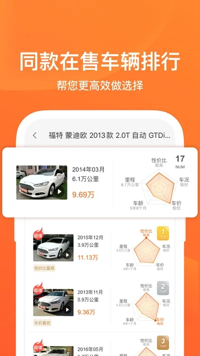 4. 坚持真实信息优先原则,广告经标准化审核。支持多种智能找车方式,数据库实时同步。内置专业估值模型,基础服务功能免费,车源价格跨度合理,分类清晰排序智能。