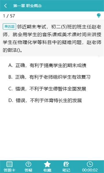 1. 雅正教资题库的题目类型丰富多样,涵盖章节练习、历年真题、模拟考试等多种形式。章节练习高质量试题,覆盖相关学科大纲所有章节考点,助你扎实掌握基础知识。