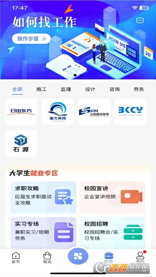2. 它可发布建筑行业职位招聘信息,还为大学生提供求职攻略,助力求职。