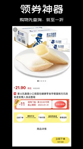 3. 支持商品关键词搜索,也能对商品拍照搜索,快速找到目标商品及优惠券。