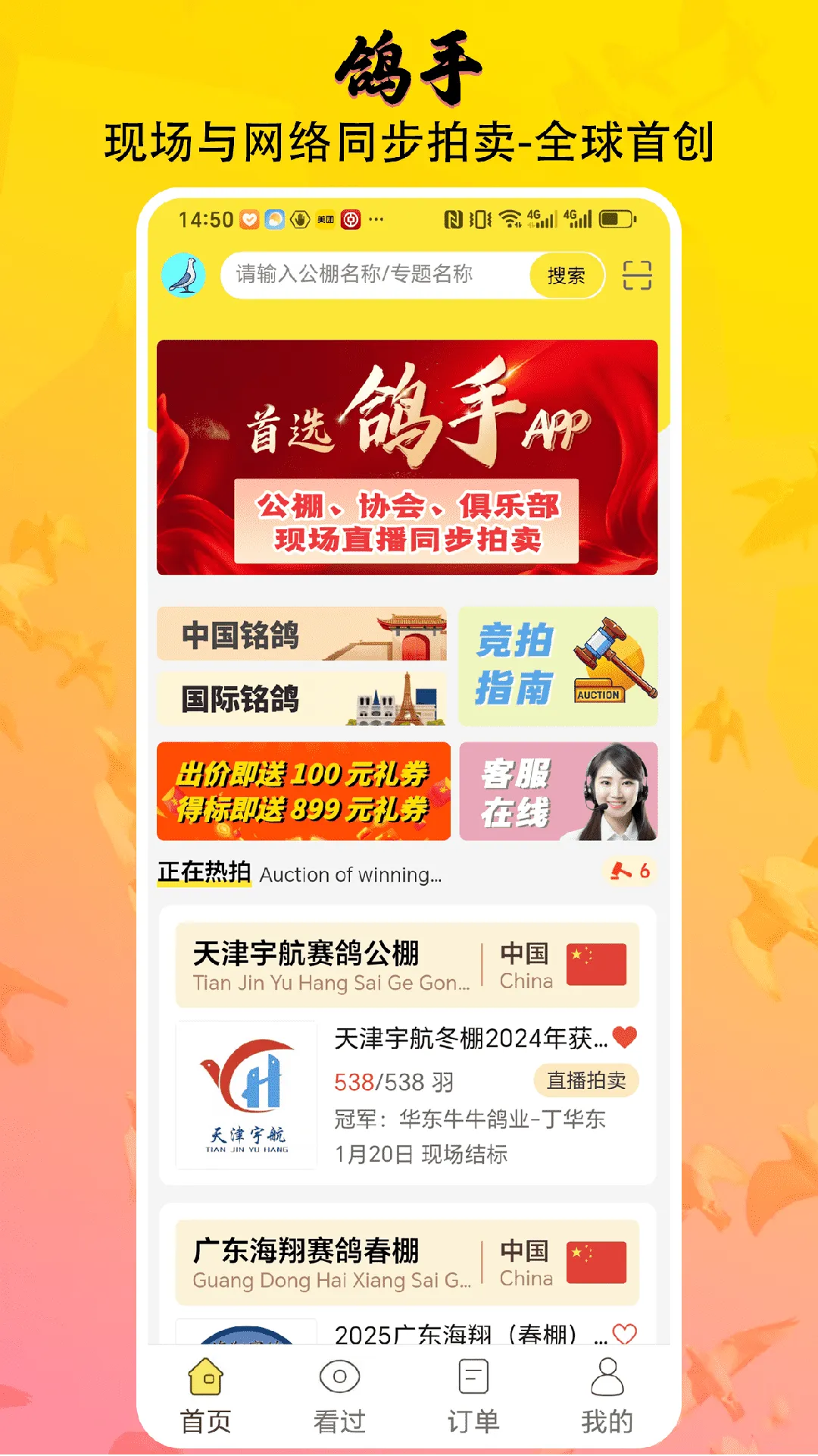 4. 平台会定期更新直播拍卖物品,还有海外精选拍卖会,能帮助用户降低成本,更好地参与信鸽文化活动。