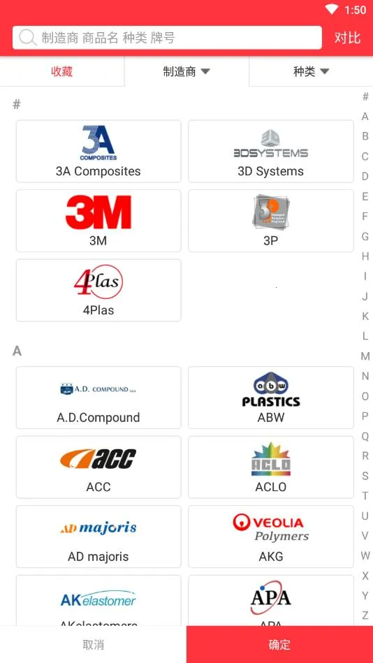 2、它可在同一页面实时展示不同产品的牌号与对应性能参数,直观的横向对比帮助快速辨析材料差异。