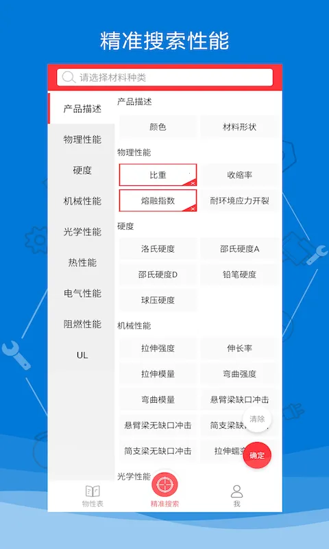 1、物性表安卓版手机版搜索能力强大,直接输入性能信息,能迅速匹配筛选出符合条件的材料,大幅提升查找效率。