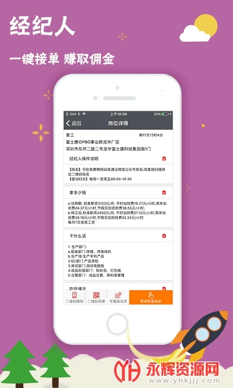 我要聘是富士康旗下富泰华的直聘软件,拓展线上招聘渠道。涵盖多种招聘功能,如社会、校园、普工招聘等,还有经纪人功能。支持多类人员求职入职,提供线上报到、培训等服务,操作便捷。