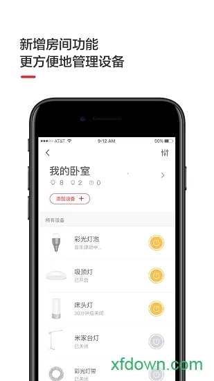2. 它支持多房间分组管理,可按需求创建灯组,批量控制设备,一键恢复特定氛围灯光。