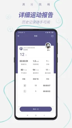 3. 软件支持云端储存跳绳统计数据,可随时随地同步,方便用户查看历史运动报告。