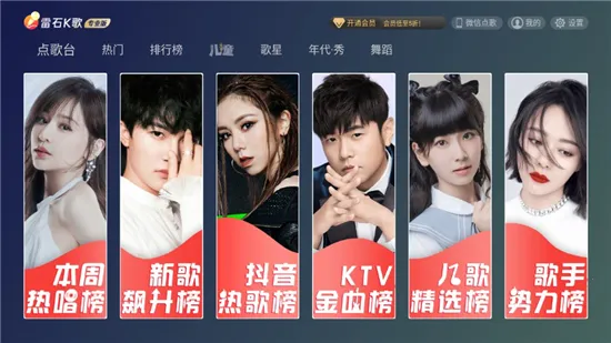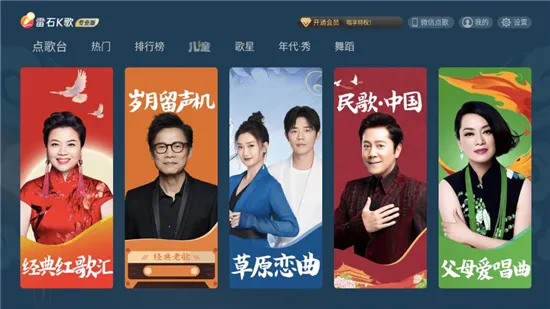 - 雷石K歌2026官方最新版本界面简洁,采用瀑布流形式显示各种分类,操作简单,上下左右键即可浏览热门推荐内容。