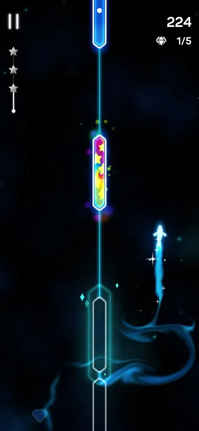 1. 游戏玩法独特,新手易上手,专家也具挑战性。只需轻按,魔法音乐鱼在节奏线移动,穿过节拍门,遇长节拍点击按住,还能随节奏点击收集星星和钻石,这是解锁更多内容的关键货币。