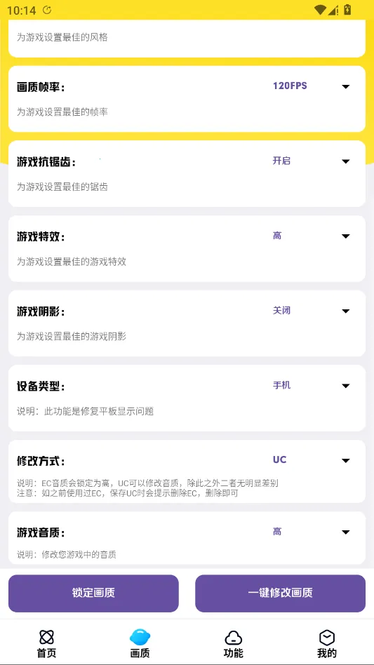 4. 提供丰富辅助工具,让画质调整更快速简单。持续更新,修复问题增添资源。可自由组合美化元素,打造个性化游戏风格。