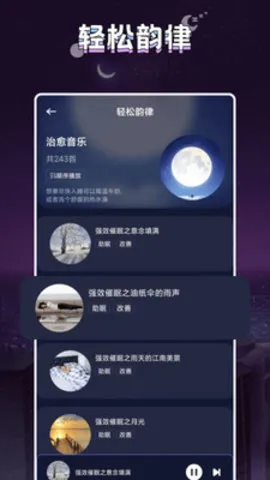 2. 它资源丰富,涵盖多种风格,能满足不同用户的助眠偏好,内置大量白噪声资源,捕捉雨森林风、动物和雷声等,营造舒适氛围助眠。