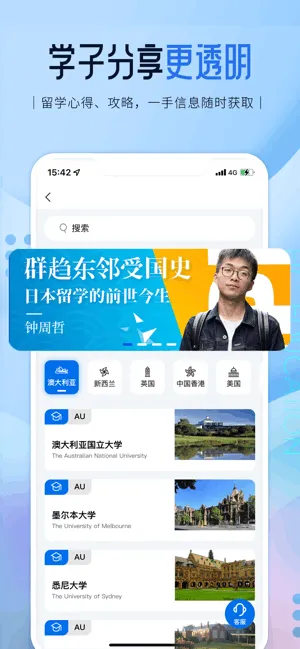 1. 提供全面留学资讯,覆盖世界各地院校专业,让你轻松掌握留学动态。