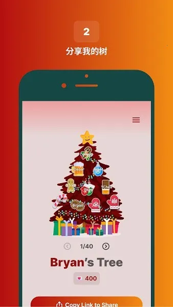 2. 双向互动装饰机制创新,用户既可装饰自己的树木,也可访问好友树木添加装饰并留言,装饰品库包含节日主题趣味图案祝福标语等丰富元素。
