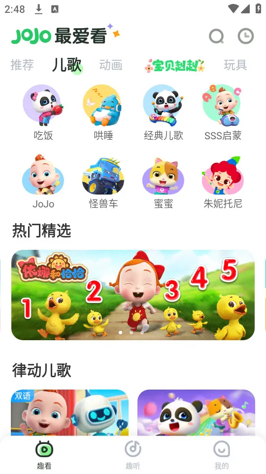 3. 3D高清动画,带来沉浸式体验,呈现音乐盛宴,韵律儿歌周周更新,极大激发孩子学习兴趣和积极性。