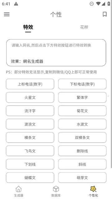 3. **兼容性强**:针对社交平台显示特性优化特效兼容性,确保生成的网名在实际场景中正常显示,如花藤文在微信昵称中完美呈现。