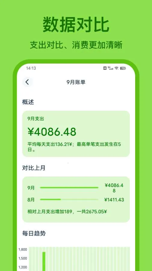 2. 能按分类标签或预算管理收支,通过图表查看消费趋势和资产变化,多维度数据展示助理清财务状况。
