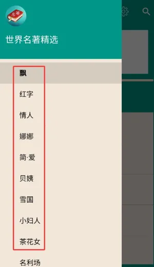 1、打开APP后点击左上角菜单图标,进入名著分类导航界面。