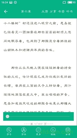 3、阅读界面提供搜索、书签、听书功能,支持字体/字号/夜间模式自定义。