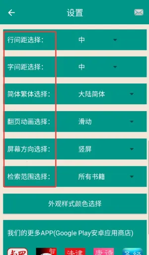 4、设置中心支持调整行间距、简繁体切换、翻页动画及屏幕方向等高级选项。