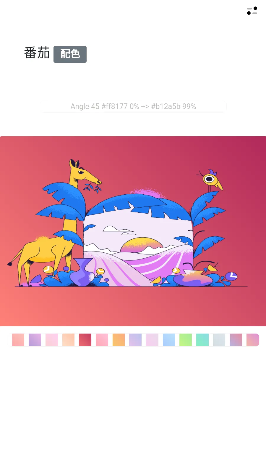 番茄配色2026最新版本是一款专业好用的移动配色工具,有多种取色方式,提供高质量配色服务。具创新数据库、高精度仿真,能显示参数、做渐变效果,可保存分享灵感,适用于多场景。