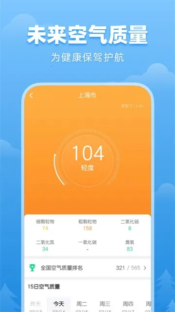 3. 15日天气预测提前知晓未来15日天气,方便根据天气及时增减衣物。
