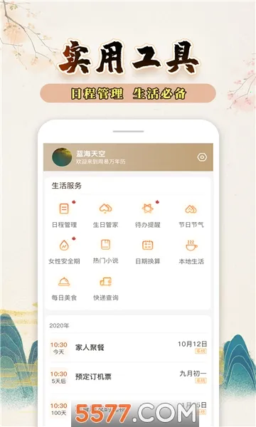 2. 知命万年历能提供丰富的日历信息,包括365天公历日历、万年历、二十四节气、传统节日等,还能查询中华老黄历农历每日宜忌、值日星神、时辰凶吉等,方便用户择吉。