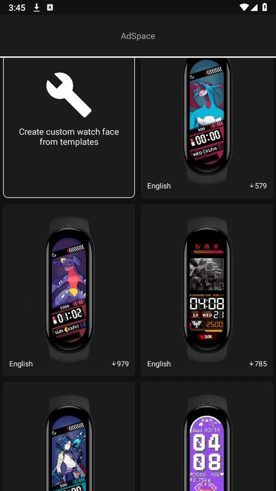 1. 拥有成百上千款独特又炫酷的表盘,可自由定制专属设计,发掘创意潜力,让手环更酷炫。