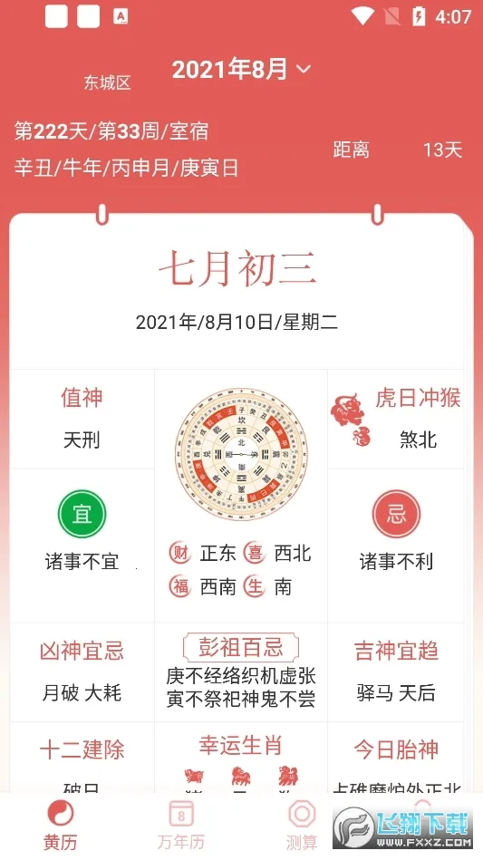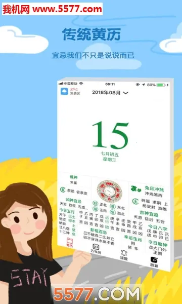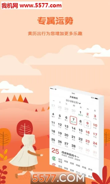 4. 特色明显,有节日提醒、传统黄历宜忌、全面内容、热门资讯、天气预报、专属运势等。软件亮点是可在线查询宜忌日期、观看星座八字运势,还能知晓节气节假日。