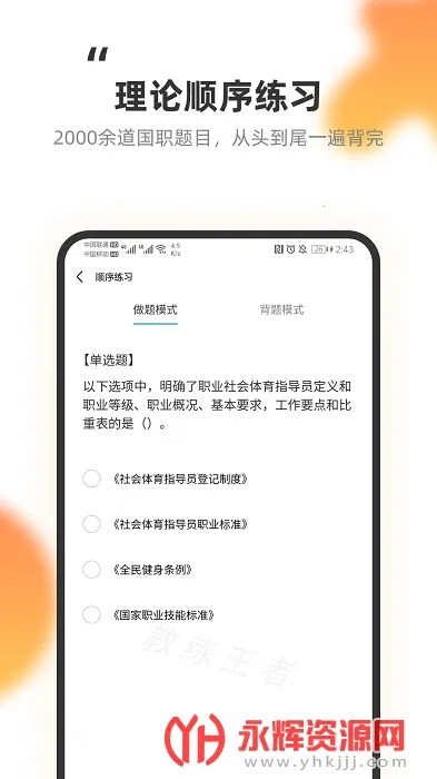 教练王者2026官方最新版本是一款为健身教练国职考试打造的备考软件。有海量题库、课程精讲,支持培训报名,含多种学习模式及特色功能,助教练轻松备考、提升专业度 。