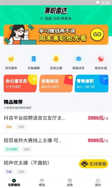 4. 兼职雷达的兼职信息真实可靠,每条都经过黑名单同步检测。而且能根据用户习惯实现准确匹配,还贴心配备督导指导工作,工资专人跟踪发放,到账快速,使用体验良好。