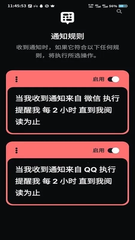 3. 支持多种通知自动化操作,如自动回复、震动提醒、自动展开通知等,堪称通知管理版的IFTTT。