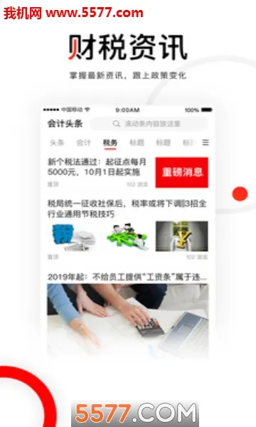 1. 丰富专业资讯覆盖多种栏目,包括会计实务、税务动态、CFO 视野、新政解读、Excel 技巧和职场生涯等,能让会计从业者随时获取专业内容。