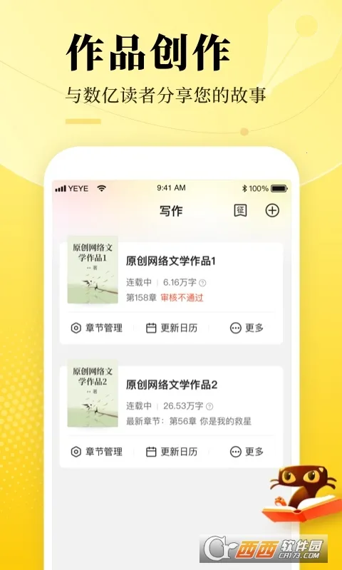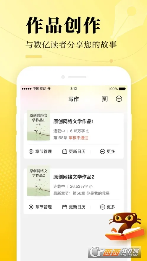 2. 支持随时随地创建新章节,享受移动创作乐趣,还能实时查看作品数据,包括留存率和收藏率等。