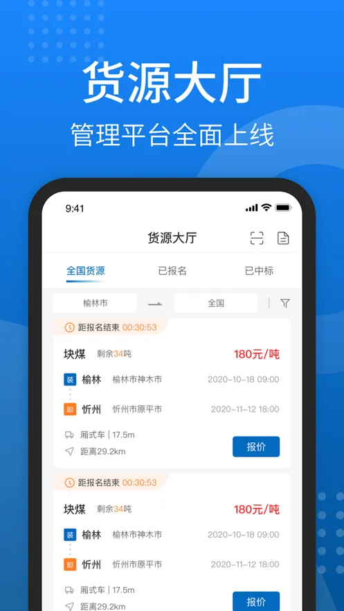 1. 陕煤运销最新手机版提供便捷下单运输体验。用户能轻松添加路线信息,平台会快速智能匹配推送,实现高效运输管理。